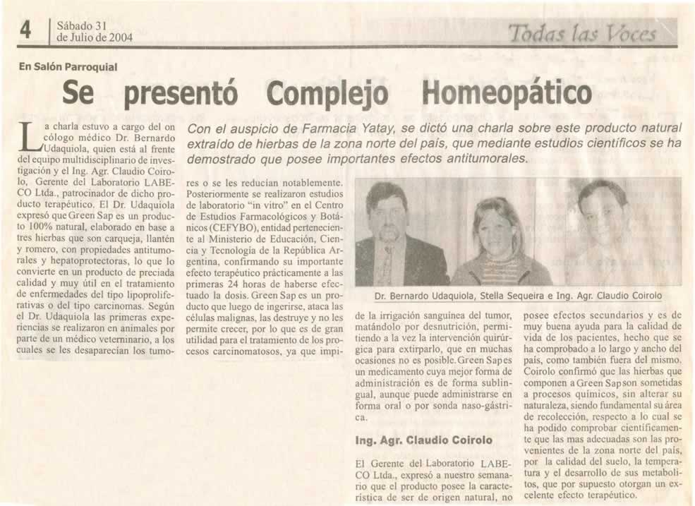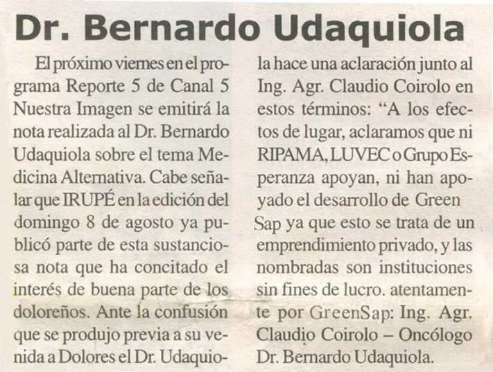 Report: Dr. Bernardo Udaquiola